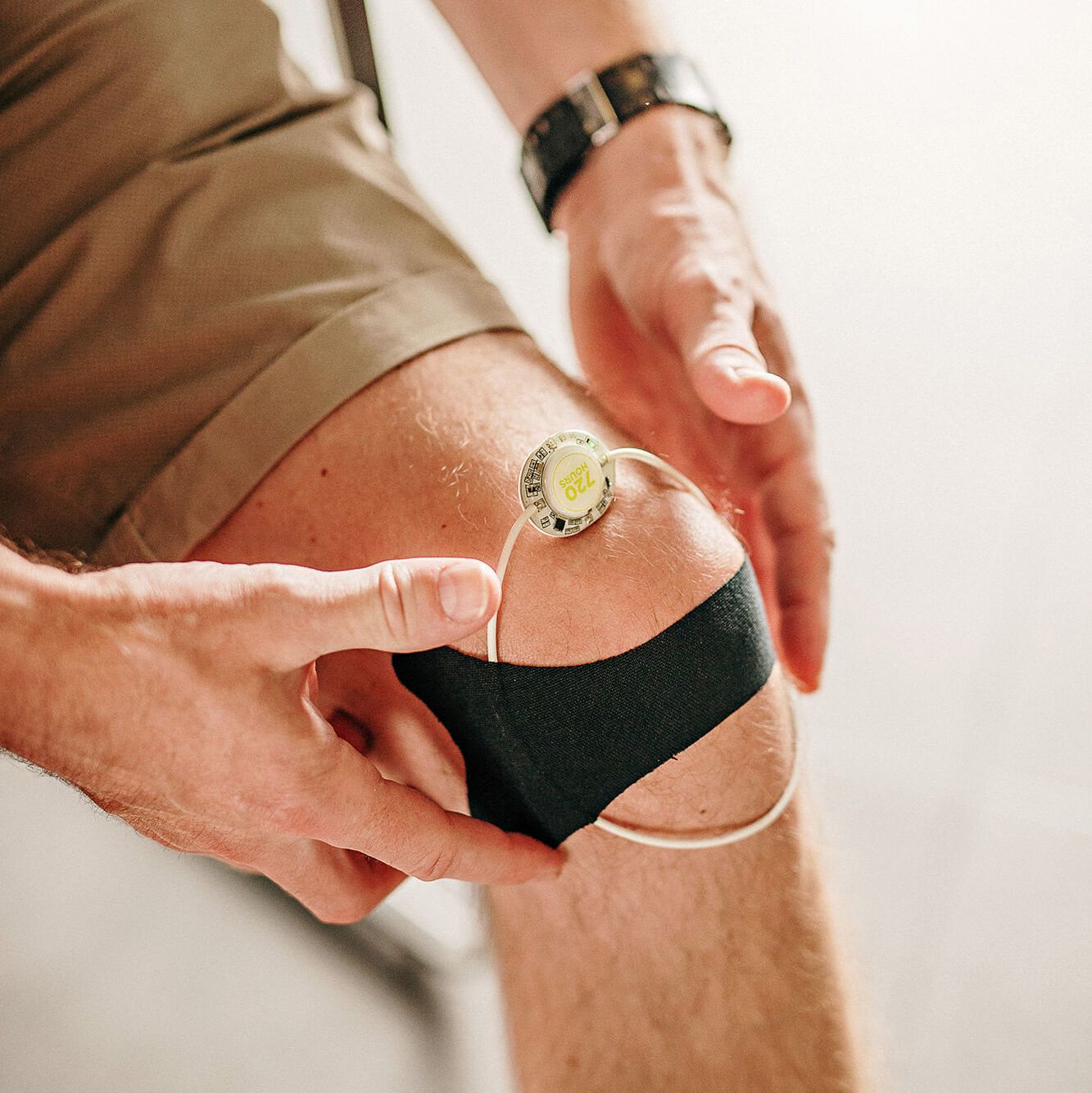 Helyezze a hurkot a fájdalom területére, a zölden világító eszközt kifelé fordítva és rögzítse a kívánt rögzítőeszközzel!